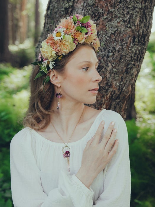 Can you picture yourself walking through a meadow where lilies of the valley, twinflowers, and forget-me-nots bloom side by side? Daughter of the North’s floral earrings and necklaces carry that same feeling with you – the tenderness, joy, and pure beauty of Finnish nature.