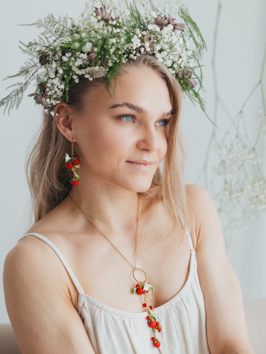 In our collection, you’ll find berry- and flower-themed necklaces inspired by the wild nature of the North. Every necklace includes a 5 cm extension chain for the perfect fit and comes in an elegant jewelry box that tells the story behind the design.