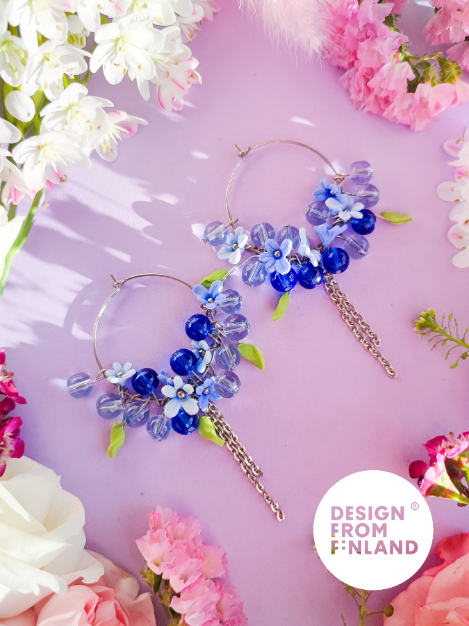 Beloved forget-me-not charms with it's delicateness and sky blue blooms. Forget-me-not is a flower of lovers, which represents devoted love - it's old finnish name used to be 'The flower of love'. The English name forget-me-not' describes well it's essence. This flower is well suited to express that innocent wish of the lovers. When forget-me-not thrives, they bloom as a light blue cloud. The sight of that stops you on your tracks, and takes you back to the flower meadows of your memories. There is no finn that hasn't picked forget-me-nots into a bouguet of flowers and placed them under their pillow as a midsummer magic ritual, or used them to make a flower garland headpiece. Forget-me-not belongs to the summers of the nightless night, and seeing one makes you almost smell the fresh finnish summer night.