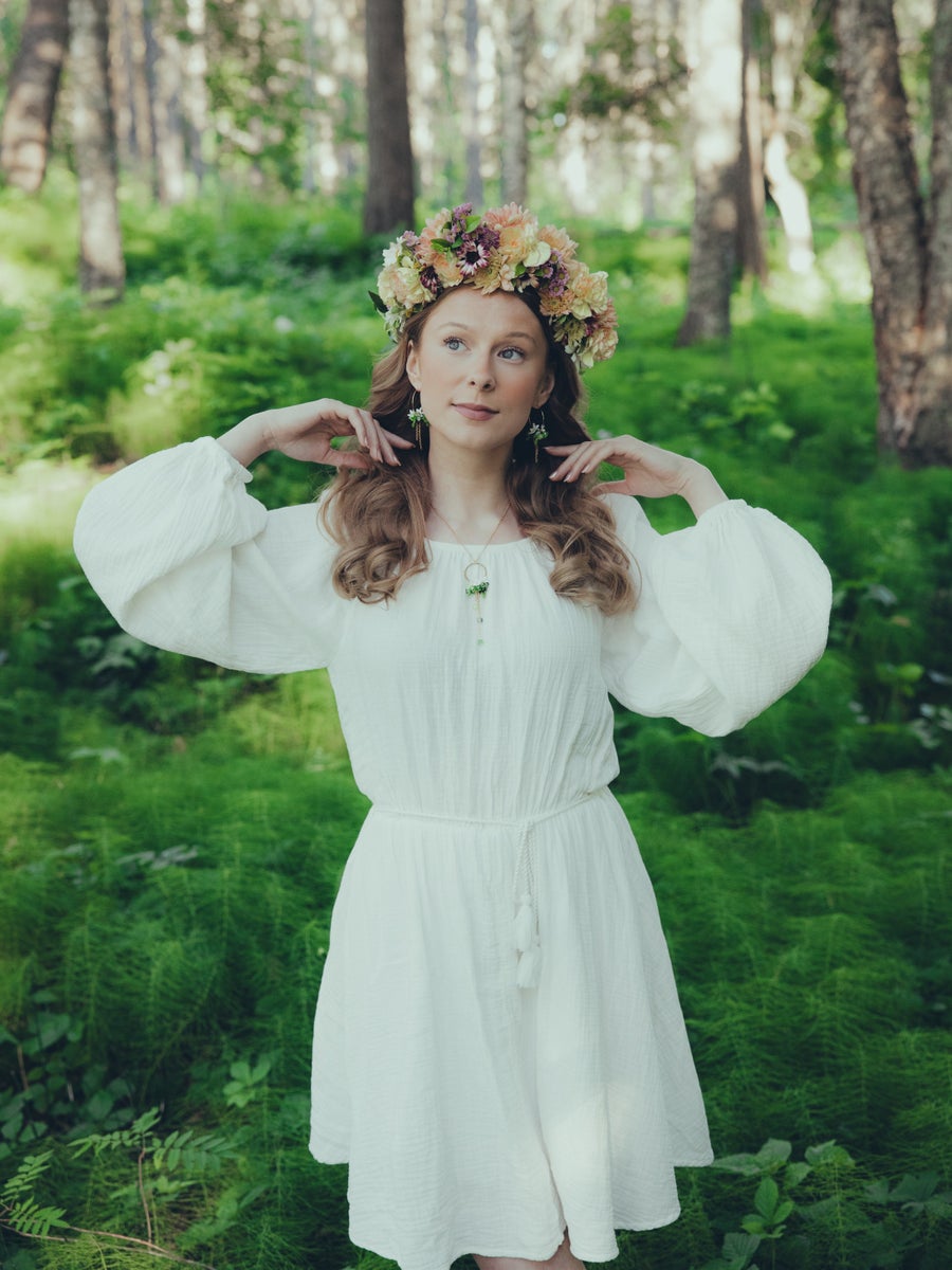 The old moss forests of the north hide secrets. Under the shelter of old trees, in the twilight of the forest, you can encounter jewels of the northern wilderness: the smallest and most secret, but even sweeter wild flowers. One of them is the fresh and pure white arctic starflower. Arctic starflower symbolizes durability, unity and transformation. It's ancient name 'morning star' represents hope of a new morning rising after the night. In the dim grove, even in the darkest corners of the forest, the beauty of the flowers twinkling with light like stars delights and gives courage to follow your own path. If you come across an arctic starflower while walking in the forest, maybe it was meant to be - this beauty only blooms for a short while.