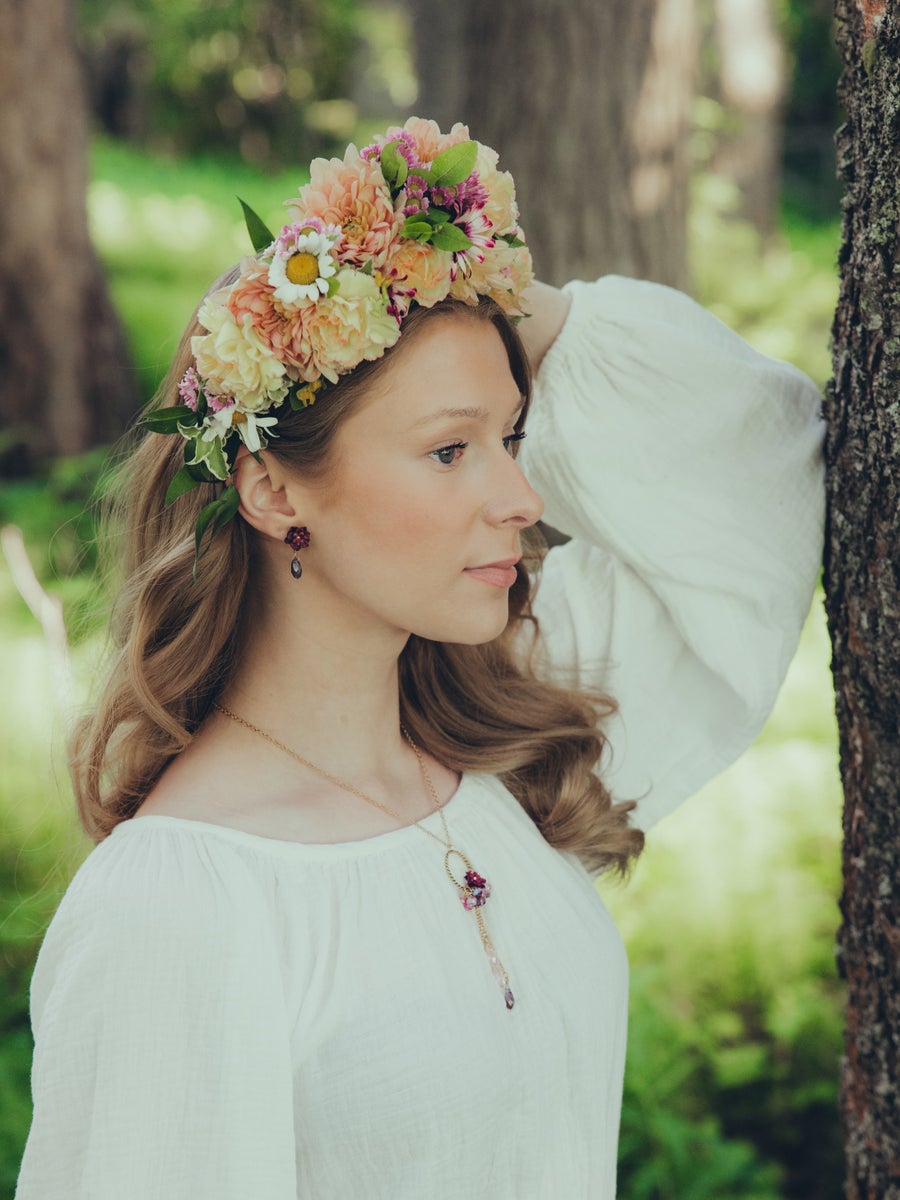 The old moss forests of the north hide secrets. Under the shelter of old trees, in the twilight of the forest, you can encounter jewels of the northern wilderness: the smallest and most secret, but even sweeter wild flowers. One of them is the showy and untamed wild rose. Wild roses blooming in the middle of the forest are the specialities of northern nature. A rosebush blooming in the forest, hidden from the eyes of others, is one of the most amazing sights you can encounter while walking in the forest. Roses are through time associated with love and passion. Wild rose,the fierce beauty of northern nature, can be said to represent the untamed side of our femininity. Independent wild roses are the ones of their kind, smell intoxicating and are especially beautiful, because they choose their own place of growth.