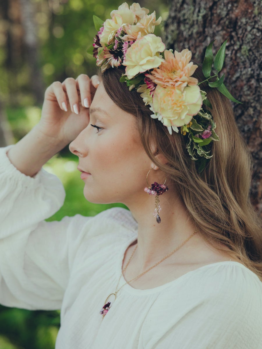 The old moss forests of the north hide secrets. Under the shelter of old trees, in the twilight of the forest, you can encounter jewels of the northern wilderness: the smallest and most secret, but even sweeter wild flowers. One of them is the showy and untamed wild rose. Wild roses blooming in the middle of the forest are the specialities of northern nature. A rosebush blooming in the forest, hidden from the eyes of others, is one of the most amazing sights you can encounter while walking in the forest. Roses are through time associated with love and passion. Wild rose,the fierce beauty of northern nature, can be said to represent the untamed side of our femininity. Independent wild roses are the ones of their kind, smell intoxicating and are especially beautiful, because they choose their own place of growth.