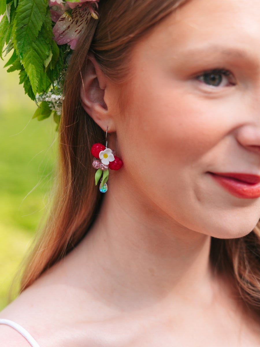 Raspberry earrings-small cluster