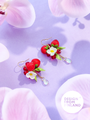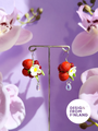Polymer clay and glass beads. Metal parts are hypoallergenic: surgical steel or 18 carat gold plated surgical steel. Jewellery is nickel free. All parts are waterproof.