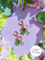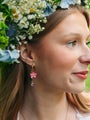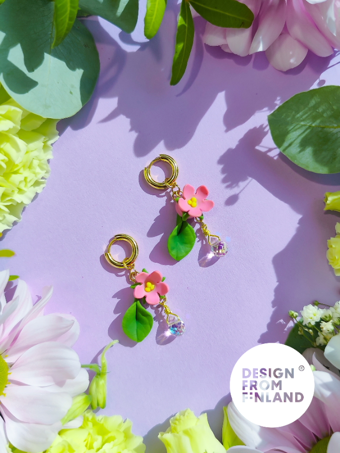 Handmade. Polymer clay and glass beads. Metal parts are hypoallergenic: surgical steel or 18 carat gold plated surgical steel. Jewellery is nickel free. All parts are waterproof.