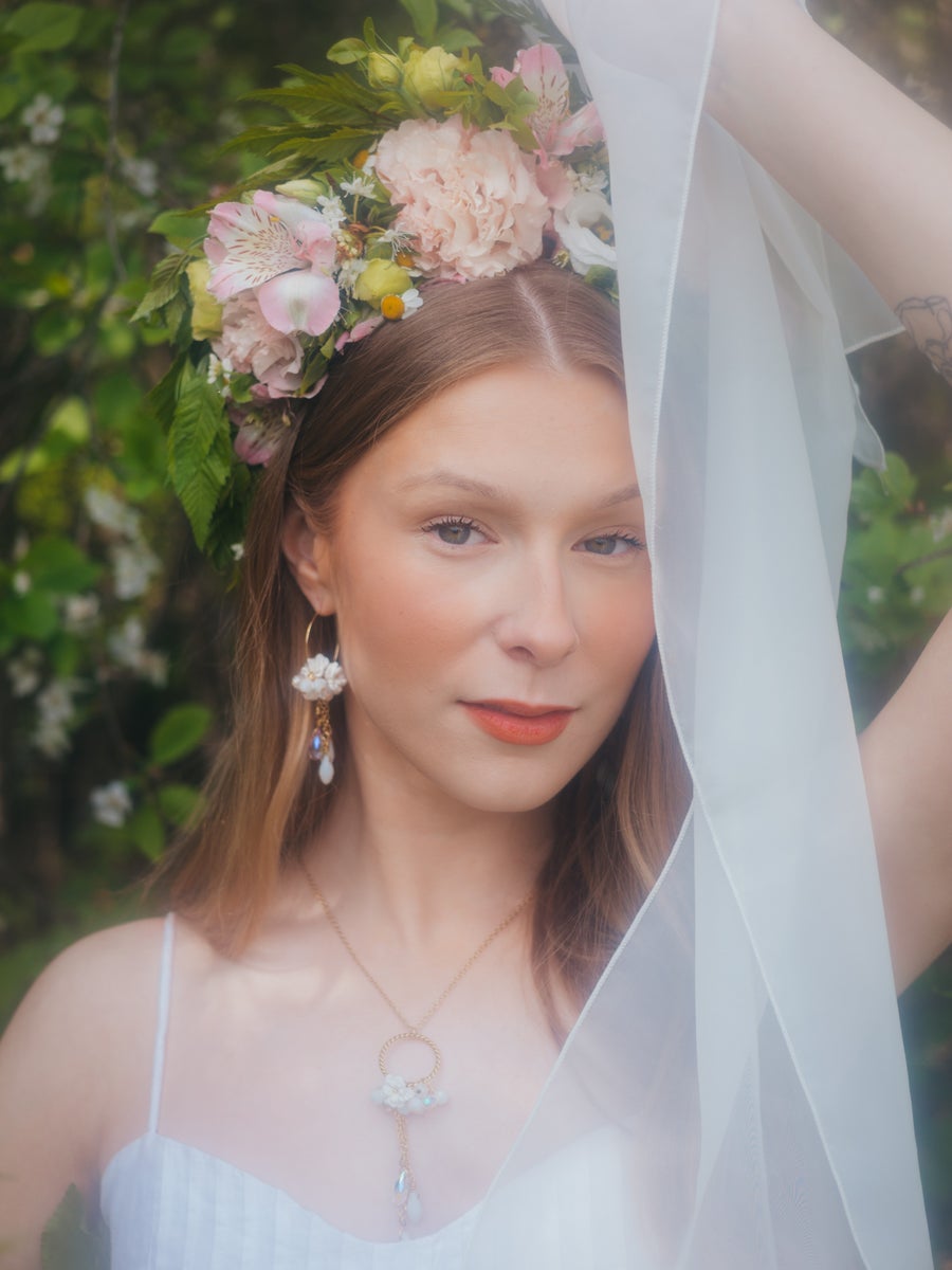 She carries the same. She stands barefoot on the grass by the midsummer bonfire, while the wind caresses her arms and loose hair and the fire plays with her shadow across the lawn. In her gaze, there is something untamed, strong, and, ancient. Wild feminity that flows in the evening breeze as free as the unbound midsummer rose.