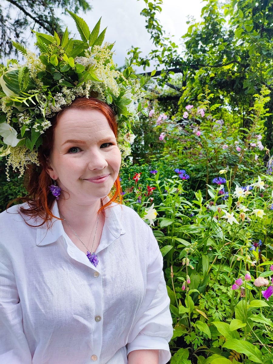 Beloved lilac has it's place in finnish hearts. Thanks to it's resilience, gorgeous flowers and strong scent, it has earned it's place as the crown of old finnish gardens. The intoxicating scent has once been believed to cast away bad spirits. It is said that lilacs represent peace and tranquility and also first love or the beginning of love. As one of summers first blooming flowers, it brings a promise of the upcoming summer. Lilac jewelry line has gotten it's inspiration from the majestic flowers of lilacs and especially the lavender hues of the old traditional finnish lilac variety. Have you ever been walking outside in the dusk when lilacs are blooming? Lilac makes the whole garden smell like a fairytale. With that lavender colored scent, you can almost believe hearing fairy wings fluttering among the lilac blooms.